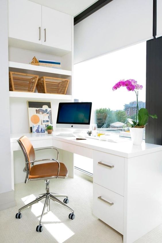 Even a little office can take advantage of the basic principles of modern small home office design ideas that you will be able to benefit from beginning immediately. We learned work office décor ideas from some of our favorite office designers to find the balance. Let's have a look into them. As we all know, organisation is key to creating a neat, tidy and functional space. The playful wall décor is both functional and boredom killer at the same time. While you can utilize all of the shelves for books and decor, we like the idea of lining the bottom shelves with baskets for stashable. However, having a smaller home office doesn't mean you must resort to a life of unorganized chaos. Find office decorating ideas in this inspiration guide. Yellow is a very strong color. For a strongly contemporary look, go for sleek lines and zero clutter. Hence, in this modern age, everyone makes a small office at home. See more ideas about office decor, decor, corner office. A small surface for your laptop is placed right in the corner.